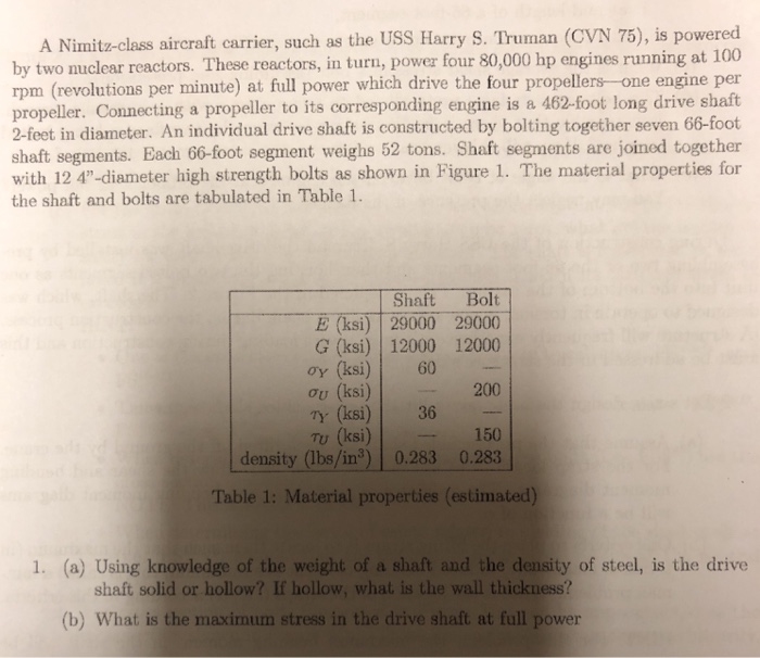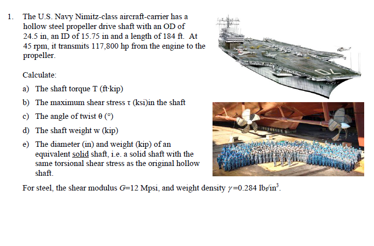 Solved 1 The U S Navy Nimitz Class Aircraft Carrier Has A Chegg Com